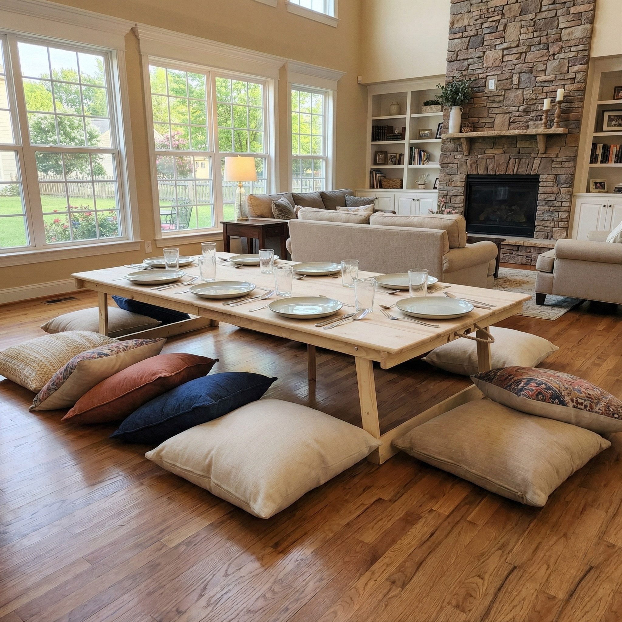 Foldable Wooden Low Table - Built-in Legs